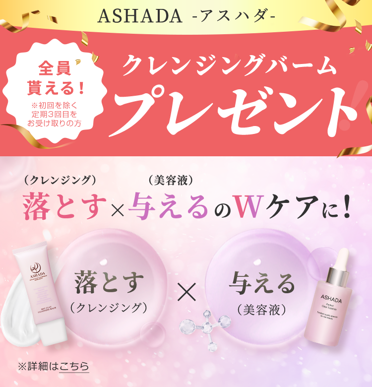 ※ASHADAクレンジングバームのプレゼントは3回目(初回を除く)の配送にて同梱させていただきます。
