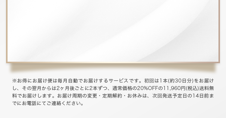 ※お得にお届け便(定期コース)3回目未満でコース解約されたお客様は本キャンペーンの対象外となります。
